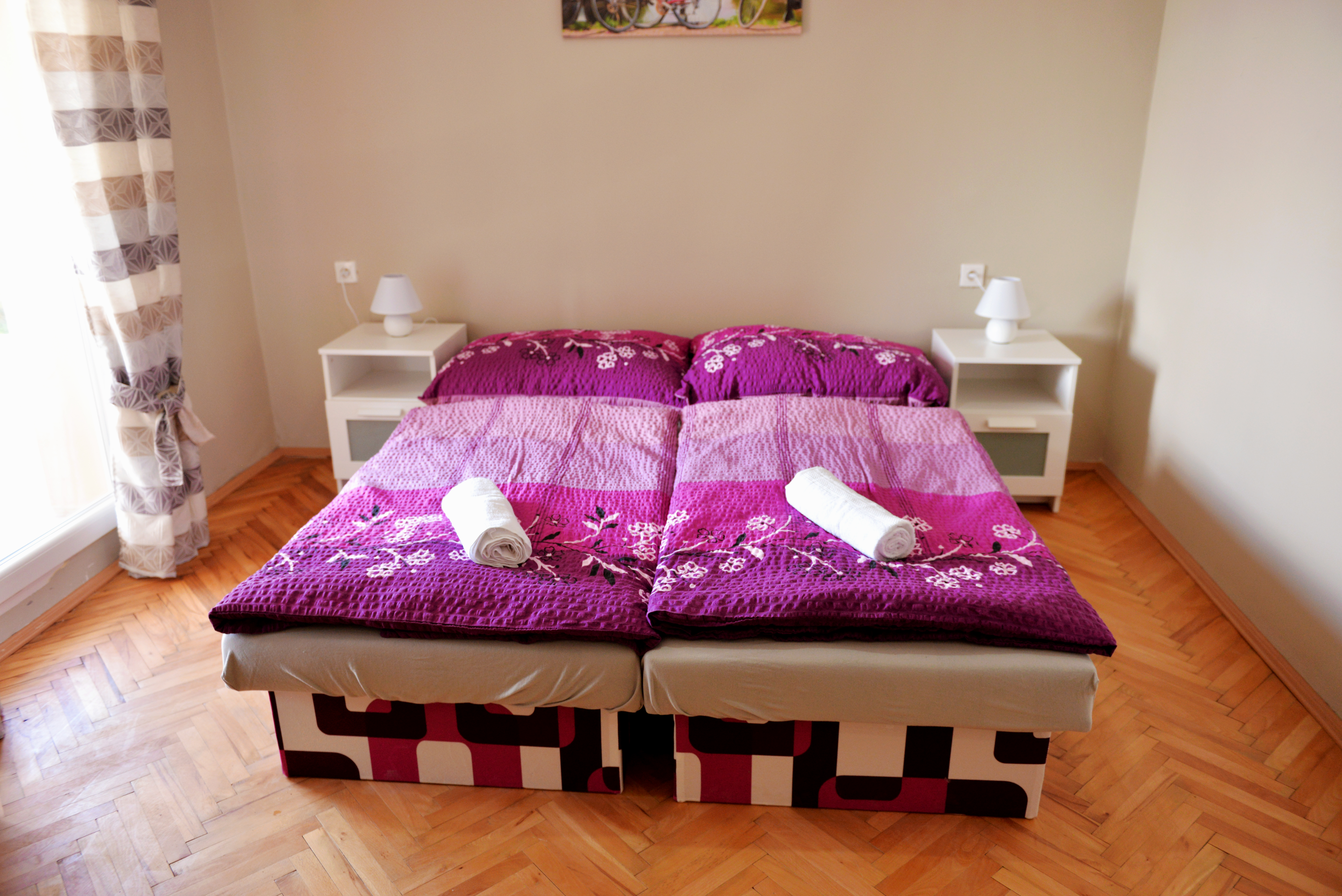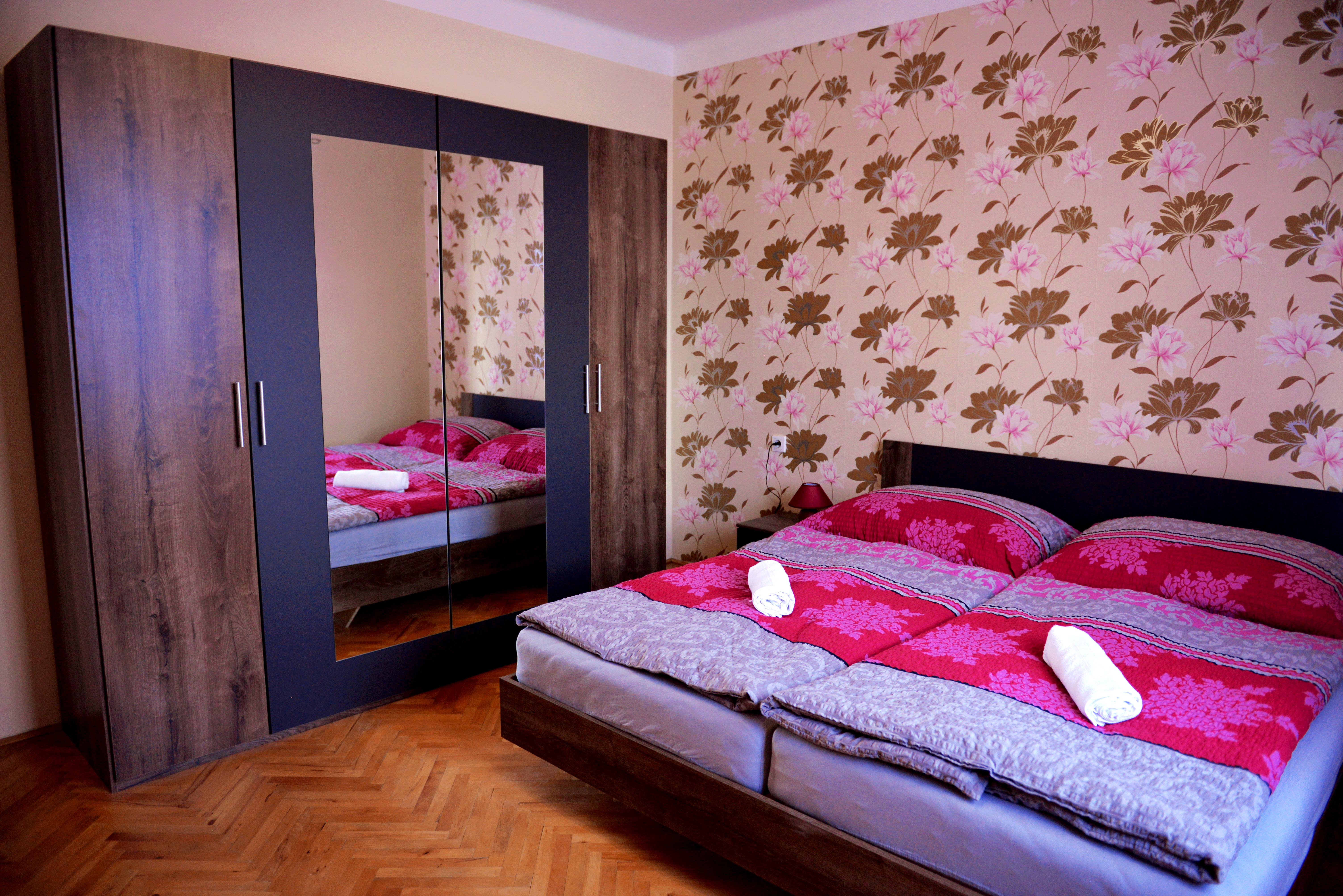 - 1 veľká spálňa– vo veľkej spálni sa nachádza 1 manželská posteľ a 2 jednolôžkové postele, skriňa s veľkým úložným priestorom, LED televízor